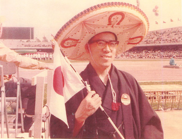 1968年、「日本人」をアピールしながら応援しようと羽織袴と日の丸の旗を持参してメキシコオリンピックへ出向いた。現地でお土産用に購入したソンブレロ(南米のカウボーイや農民がかぶるつばの広い帽子)が大きく手に持てないので頭に被り、その恰好でメーンスタジアムへ陸上競技を応援しに行く。5000メートル走を選手の間近で応援していたが、選手がトラックを何周も走っているうちにどの選手がトップか分からなくなってしまった。そんな中、日本人の選手が来たと思いスタジアムの前へ出て行って応援を始めたが、選手が近づいてくるうちに日本人選手ではなくメキシコ人選手だということに気が付いた。しかし、日本人選手じゃなくてもこの晴れ舞台で競技に賭ける選手の気持ちは良く分かるので、「おーい、ランラン(走れ走れ)!」「メヒコ、メヒコ、ランラン(メキシコ、メキシコ、走れ走れ)!」って声をかけた。自分では走れ走れと呼びかけたつもりだったが、「ランラン」という言葉はメキシコでは「頑張れ」という意味で、会場の人達には、羽織袴にソンブレロ姿の日本人が「メキシコ頑張れ!」と言ってメキシコを応援しに来ているように映った。